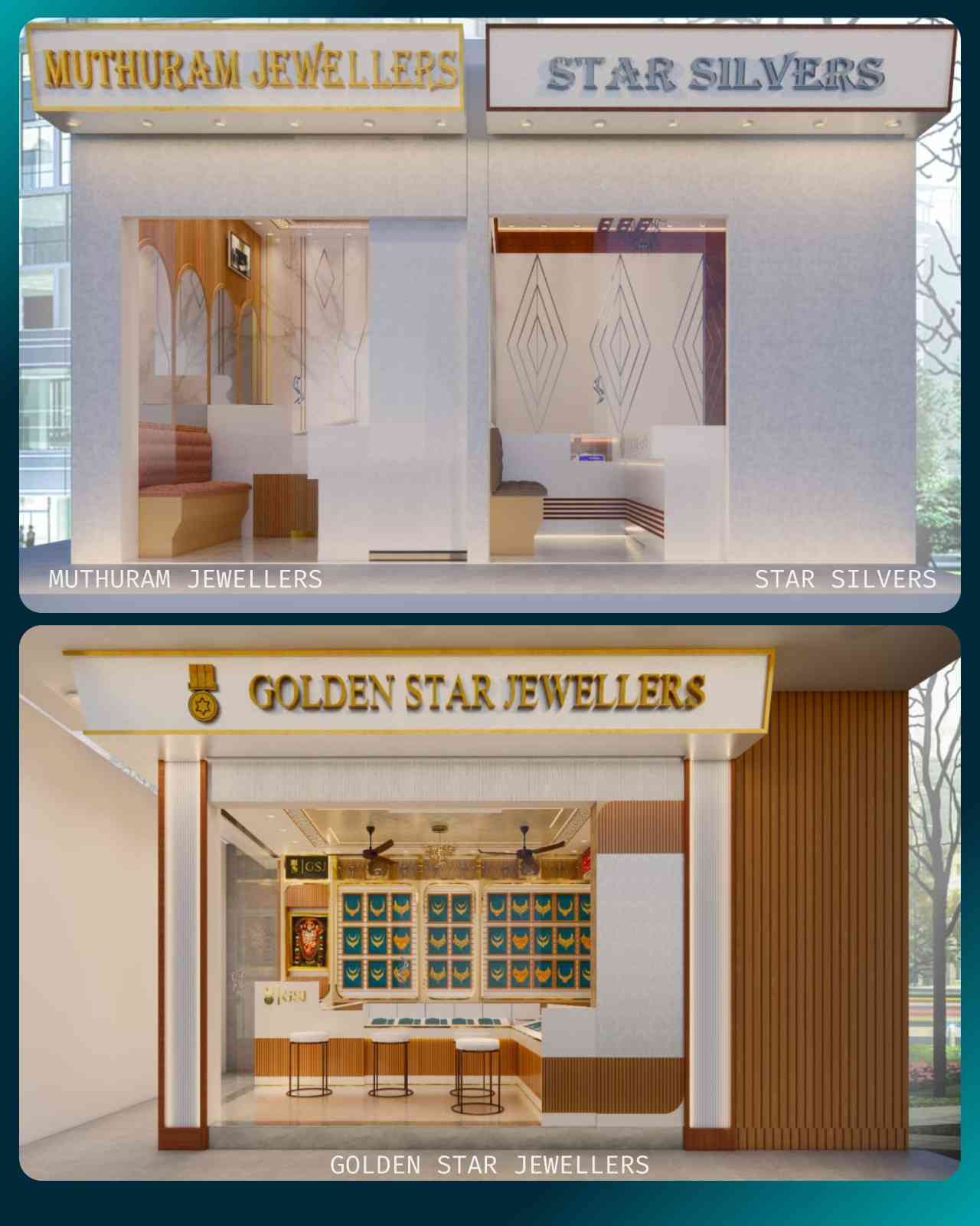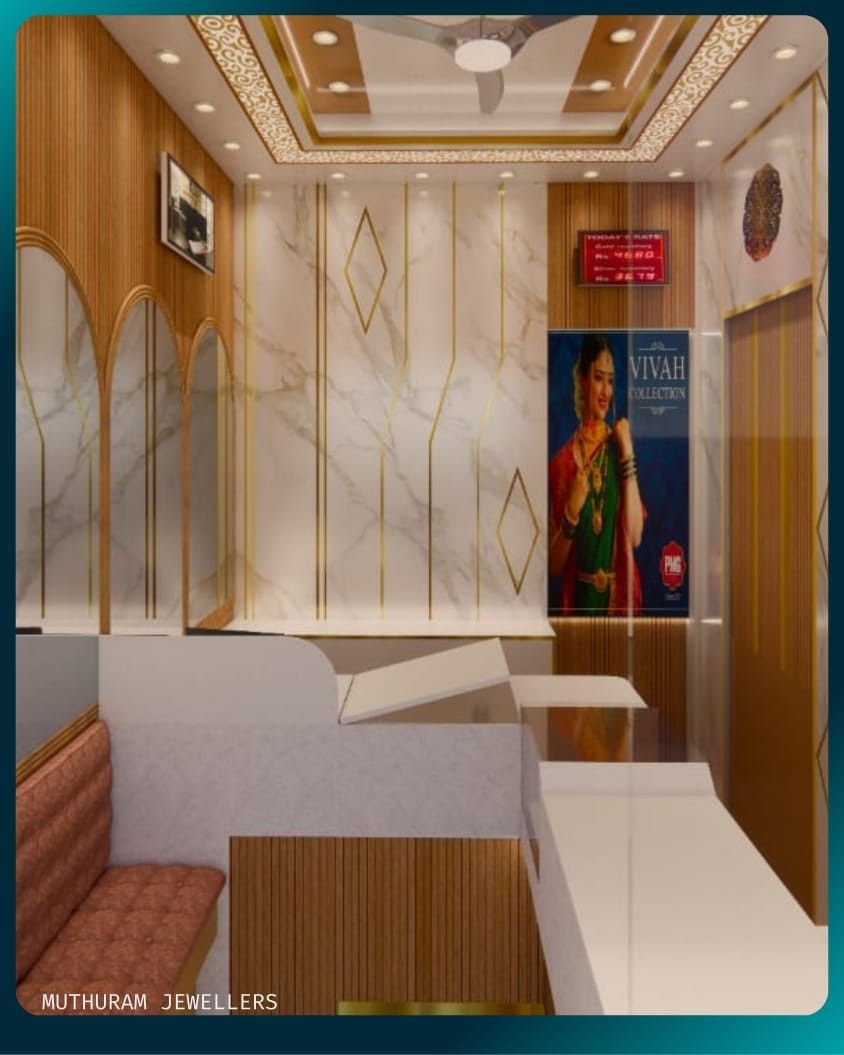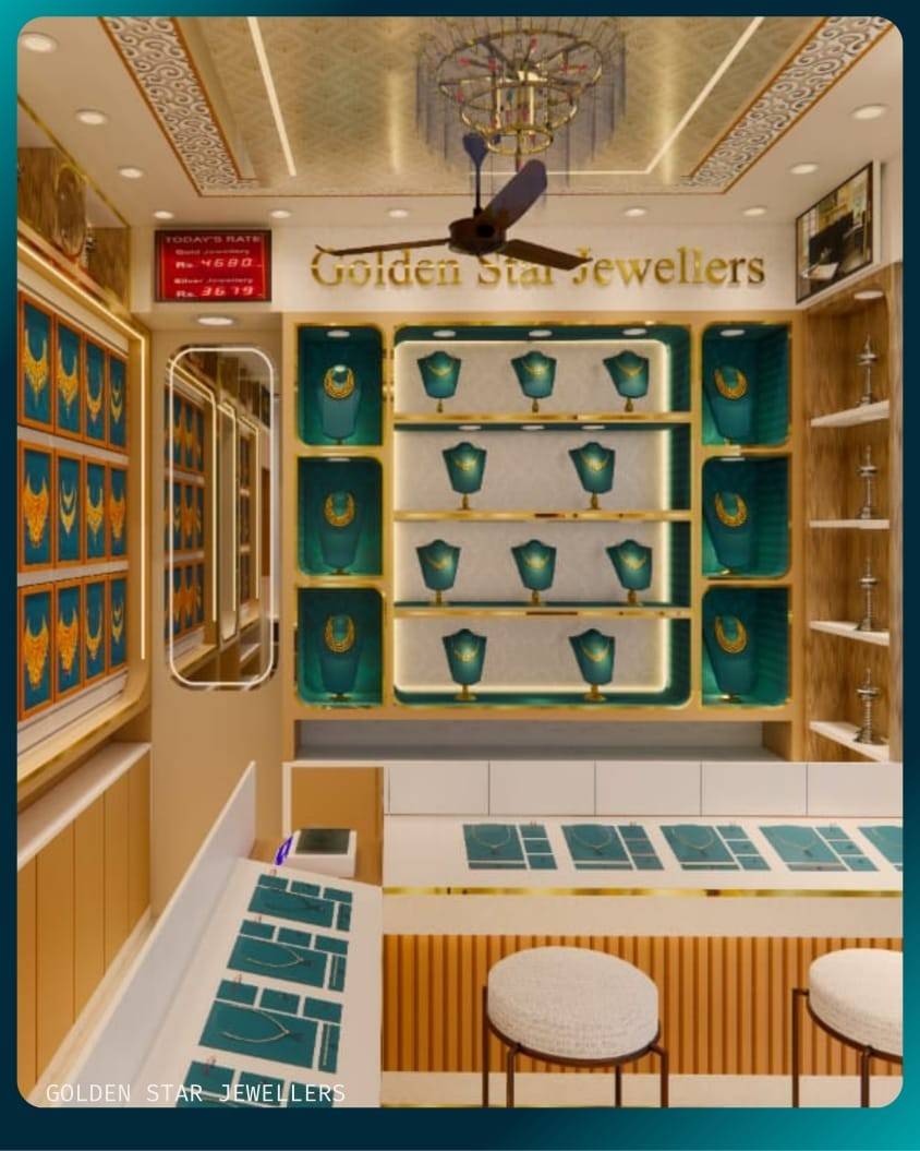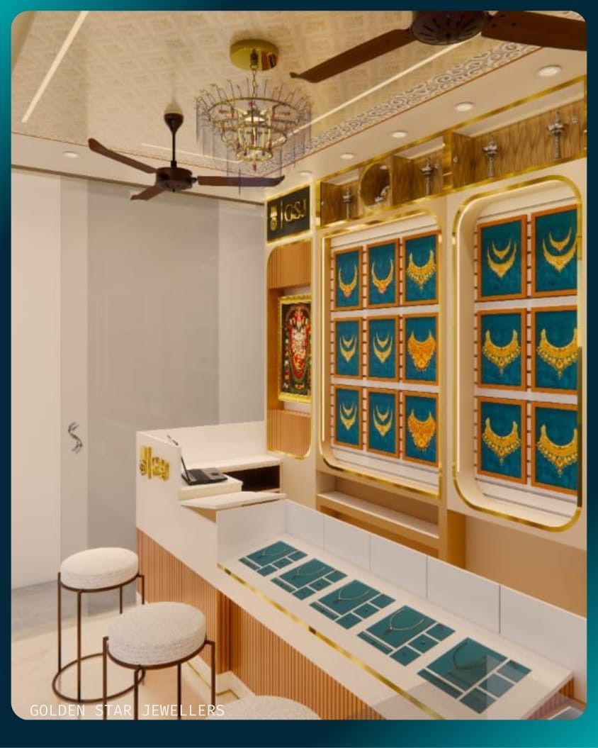 It is an innovative 400 sq. ft. commercial interior project that brings together three distinct jewellery brands — Golden Star Jewellers, Star Silvers, and Muthuram Jewellers — under a single, harmoniously designed showroom. Located in the vibrant heart of Valayal Kadai, Madurai, this ongoing transformation is led by client Mr. Santhosh with a vision to offer elegance, clarity, and identity to each brand within a compact space. The design approach integrates tailored furniture layouts and conceptual interiors that celebrate the unique aesthetic of each label while maintaining spatial continuity. Thoughtful visualizations and detailed working drawings ensure that each corner is both purposeful and refined, offering customers a premium retail experience. With end-to-end site supervision and curated sourcing, Golden Star Jewellers, Star Silvers, and Muthuram Jewellers becomes more than a showroom—it’s a unified design narrative that reflects tradition, trust, and contemporary commercial expression, crafted for a timeless presence.